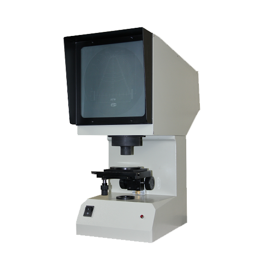 本投影儀光源發出的光線經聚光鏡照射到被測物體,再經物鏡將被照射物體放大的輪廓投射到投影屏上。根據需要,本儀器為單一投射照明,光源通過一系列光學元件投射在工作臺上,再通過一系列光學元件將被測試樣缺口輪廓清晰的投射到投影儀上。物體經二次放大和二次反射成正像,在投影屏上所看到的圖形與實際試樣放置的方位一致。